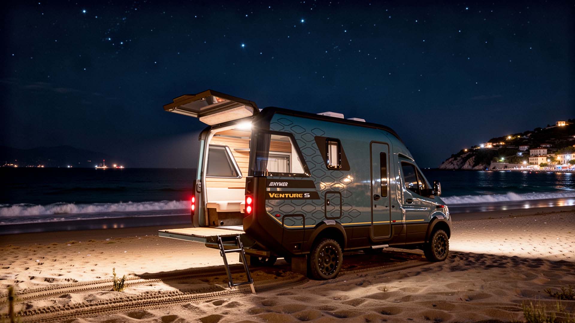 For an internal presentation at CMT Stuttgart, we developed a compact real-time vehicle configurator for the HYMER Venture S using Unreal Engine within a very tight timeframe. The application allowed users to interactively change exterior paint colors, adjust lighting and time-of-day scenarios, and open doors as well as the roof to explore the vehicle in detail.