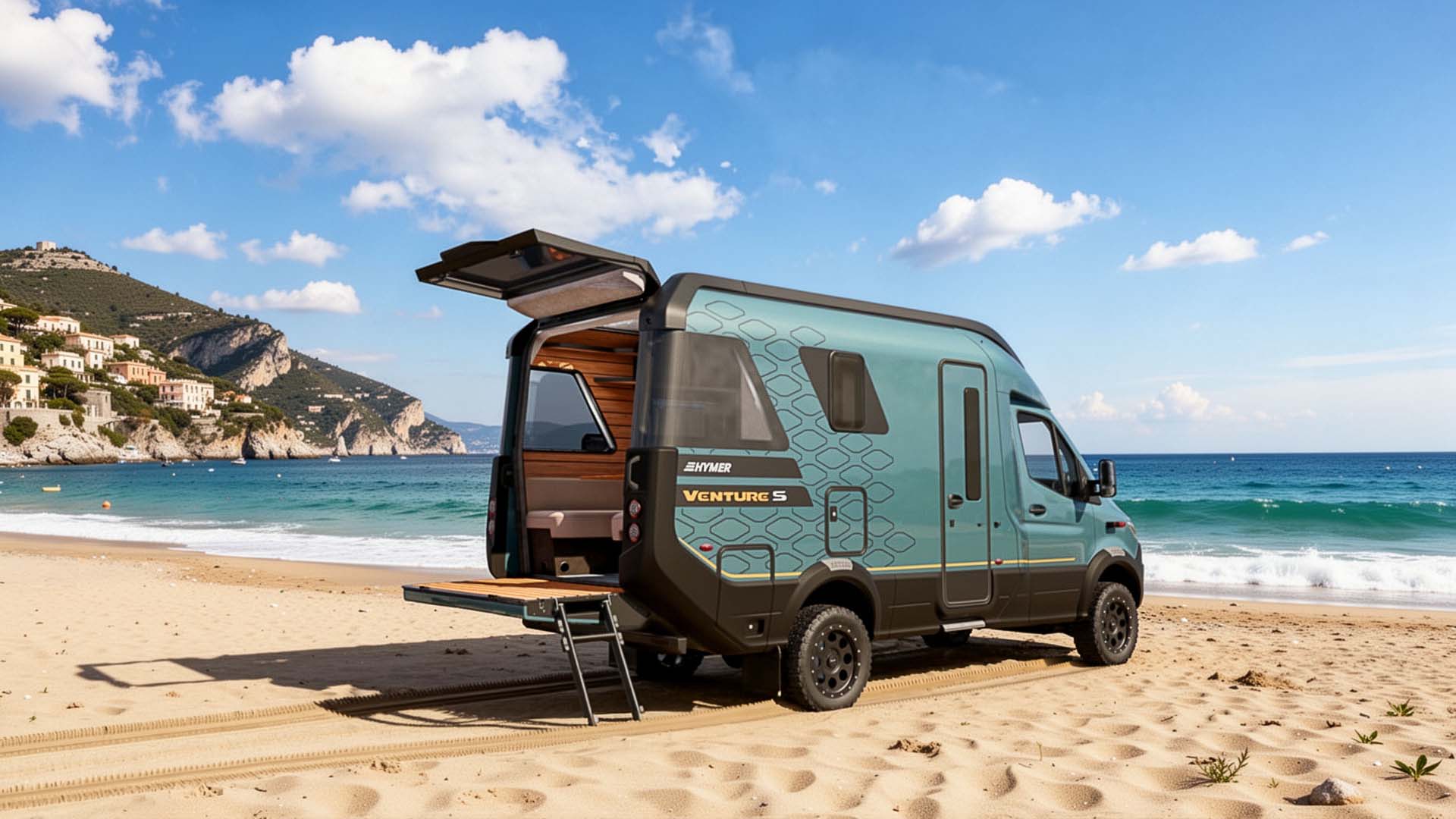 As part of the presentation, additional product visuals were rapidly created, combining high-quality vehicle renderings with AI-generated backgrounds to place the Venture S in a variety of atmospheric locations.